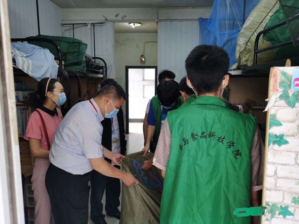 随后,志愿者们分成五个工作组,在老师们的带领下开始将寝室的物品统一打包整理到床铺上。同学们拿上袋子,将衣物、书本、鞋子等物品分别打包,封箱堆垛……忙而不乱、张弛有序。宿舍物品整理是体力活,60多个床位等待整理,炎热的夏天志愿者们满头大汗,但是同学们毫无怨言,依然积极主动,认真对待,奉献自己的爱心,用自己的实际行动展现茶食学子的精神风貌。(马静静 通讯员:张宪林)
