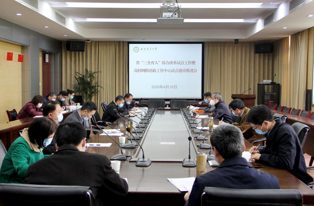 本网讯 4月10日上午,校党委常委、副校长蒋家平主持召开学校“三全育人”综合改革试点工作推进会,统筹推进“三全育人”综合改革试点工作以及高校网络思政工作中心试点建设工作,校党委副书记裴树东出席会议。