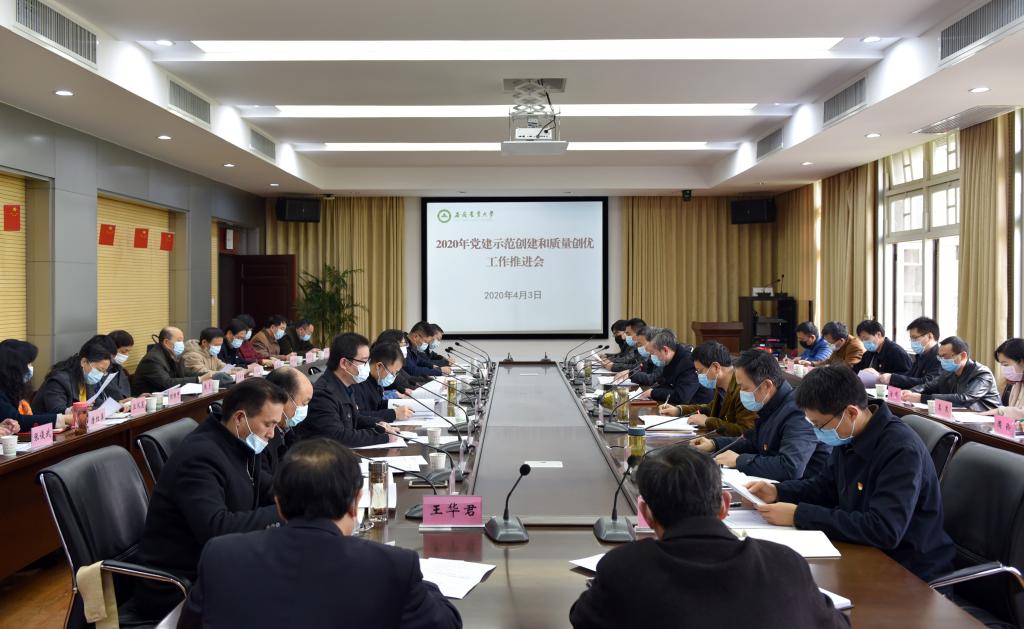 本网讯4月3日上午,校党委书记江春在第三会议室主持召开党建示范创建和质量创优工作推进会,交流研讨学校党建示范创建和质量创优工作培育创建阶段成果,部署推进下阶段工作。校党委副书记裴树东、纪委书记陈文兵出席了会议,各二级党组织书记及获批全国、全省和学校党建工作培育创建单位的党支部书记参加了会议。
