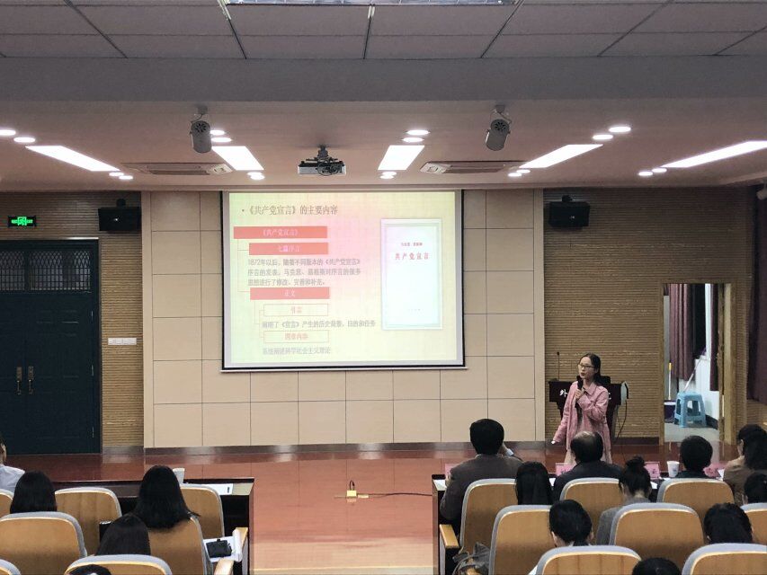 制定年度理论中心组学习计划和《外国语学院教职工政治理论学习制度》,各系部组织教职工每月开展一次政治理论学习。定期开展富有亲和力和针对性强的思想政治工作,创新开展“重要节日+主题党日”和“一支部一品牌”特色党支部创建活动,把党建品牌创建作为提升理论素养、服务师生的工作载体,作为推动工作、展示形象的有力手段。深入挖掘思政元素,推进“课程思政”建设,学院邀请专家来院开展“课程思政”专题讲座,组织教师外出参加“课程思政” 建设研修班,开展教学研讨,鼓励教师挖掘每门课程中的思政元素,积极申报“课程思政”示范建设项目和撰写论文。