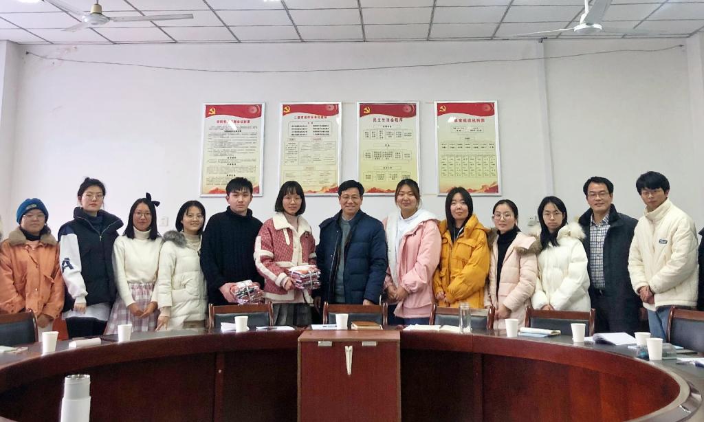 专题党课结束后,裴树东为支部考研学子送上考研礼包,送去了学生党支部冬日的温暖和祝福。(通讯员:张旭念)