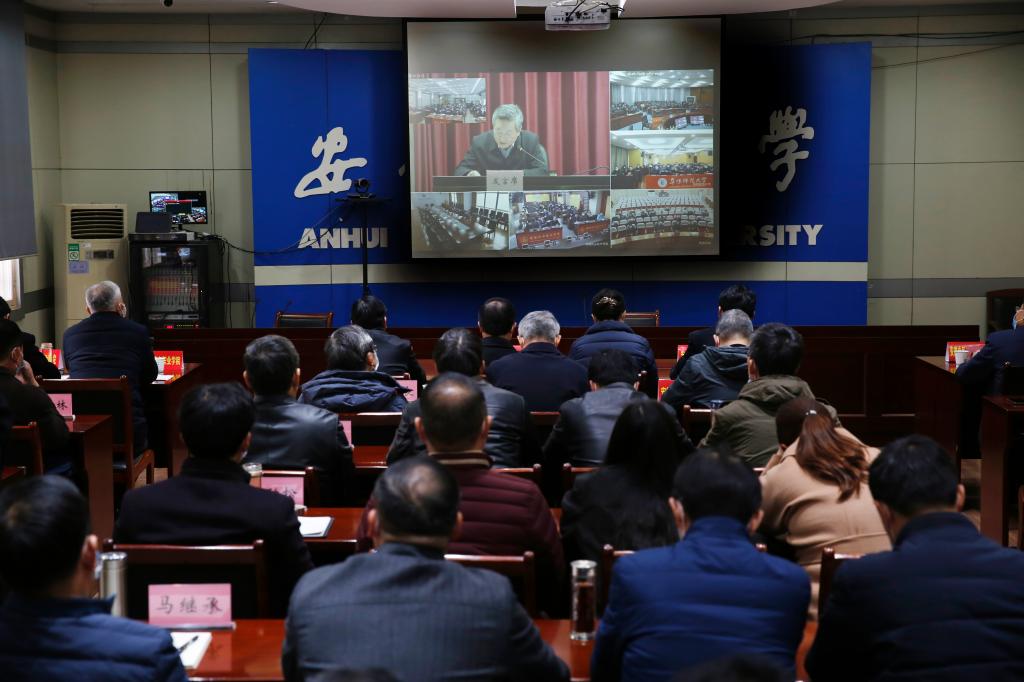 本网讯3月3日上午,省委教育工委召开2021年全省高校思想政治教育重点工作推进视频会。省委教育工委书记钱桂仑出席并讲话,省委教育工委副书记、省教育厅机关党委书记王佩刚主持会议。我校党委书记江春代表学校在主会场参加会议并作交流发言。校党委常委、副校长李红,宣传部、学工部、保卫处、马克思主义学院负责同志在分会场参加了视频会议。