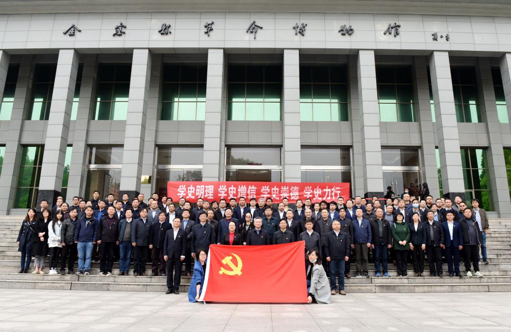 本网讯4月24日,在习近平总书记调研安徽金寨五周年之际,校党委中心组(扩大)赴金寨县开展党史学习教育实践活动暨“学史明理”专题学习研讨,通过现场教学、辅导报告、专题研讨等方式,缅怀革命先烈、重温红色历史、传承革命精神,推深做实党史学习教育。校领导江春、夏涛、裴树东、李红、马传喜、韩军、陈文兵、操海群参加活动。