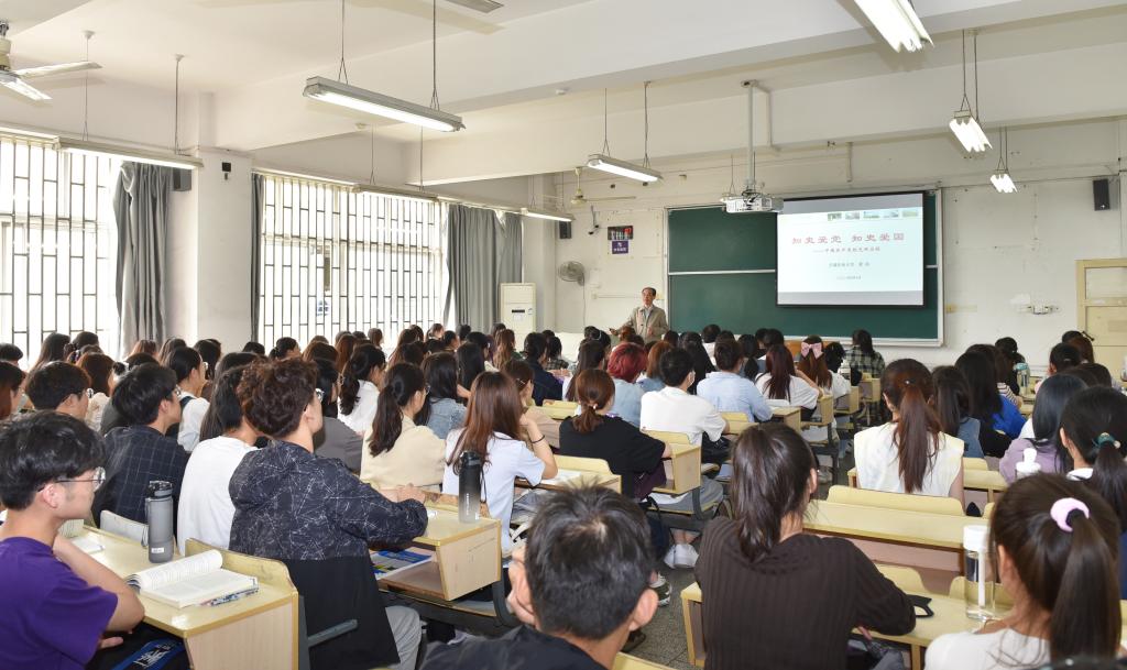 夏涛以《知史爱党 知史爱国——中国共产党的光辉历程》为题,带领同学们共同学习了习近平总书记在党史学习教育动员大会上的重要讲话精神,深入浅出地讲授了从1840年鸦片战争到1949年新中国成立这一时期中国历史发展的基本脉络,以及太平天国运动、洋务运动、戊戌变法、义和团运动、辛亥革命、五四运动、中国共产党成立等重大历史事件。