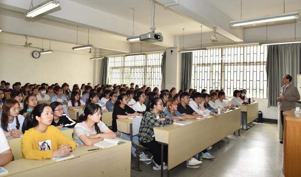 本网讯 5月7日上午,校长夏涛深入课堂,为2020级英语专业130余名同学讲授了一堂生动的党史学习教育专题思政课。校党委宣传部、教务处、马克思主义学院、外国语学院相关负责同志随堂听课。