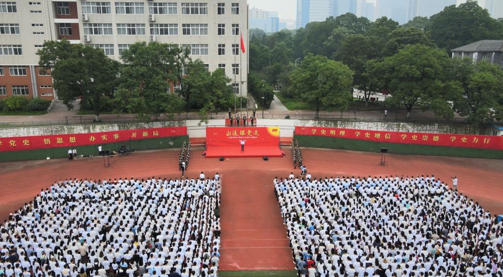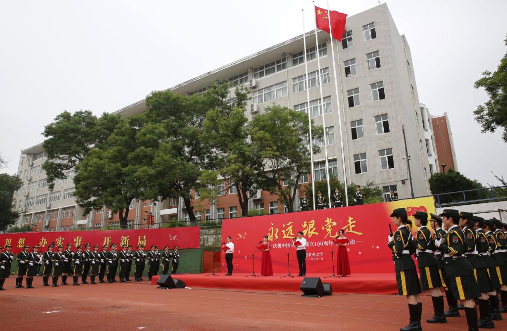 本网讯 “是谁,播下一把燎原的星火,燃过百年的峥嵘岁月,温暖了万千炎黄子孙的心窝;又是谁,怀着一种永恒的信念,走过百年的漫漫长路,托举出万里山河一片壮阔......”7月1日清晨,慷慨激昂的旋律在校园上空飘荡,“永远跟党走”庆祝中国共产党成立100周年主题活动在第一运动场庄严启动。校领导江春、裴树东、马传喜、韩军、陈文兵、操海群,校党委中心组成员,处级干部,教师代表、学生代表2000余人参加。