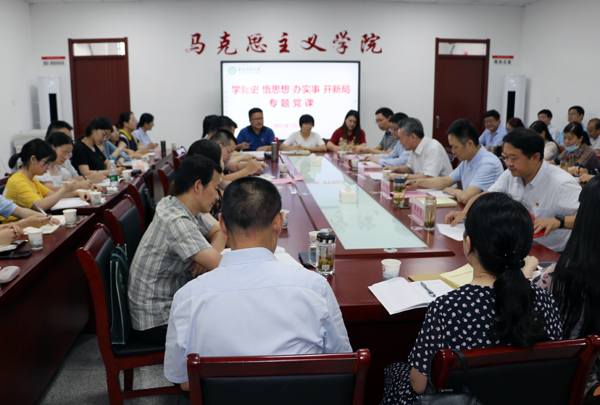 本网讯 7月20日下午,校党委书记江春到马克思主义学院,结合庆祝中国共产党成立100周年,以“学党史、悟思想、办实事、开新局”为主题,为全院教职工讲授专题党课。省委第一巡回指导组到场指导。