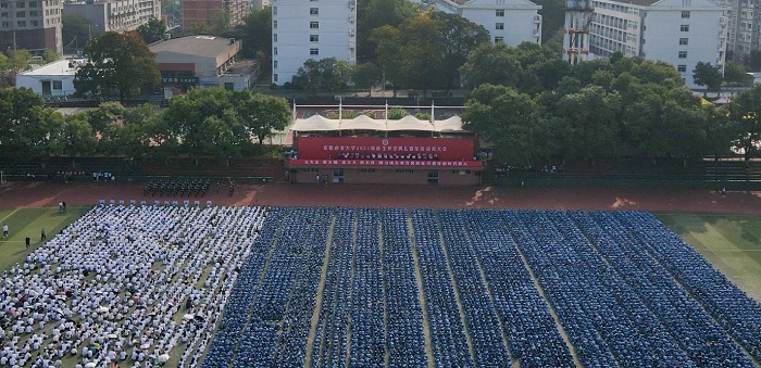 本网讯9月15日上午,我校在田径运动场举行2021级新生开学典礼暨军训动员大会。校领导江春、夏涛、裴树东、李红、韩军、陈文兵、操海群、熊健,承训单位领导刘玉成出席会议。校直有关单位负责人及各学院主要负责人,新生辅导员以及2021级全体新生参加大会。大会由校党委副书记裴树东主持。