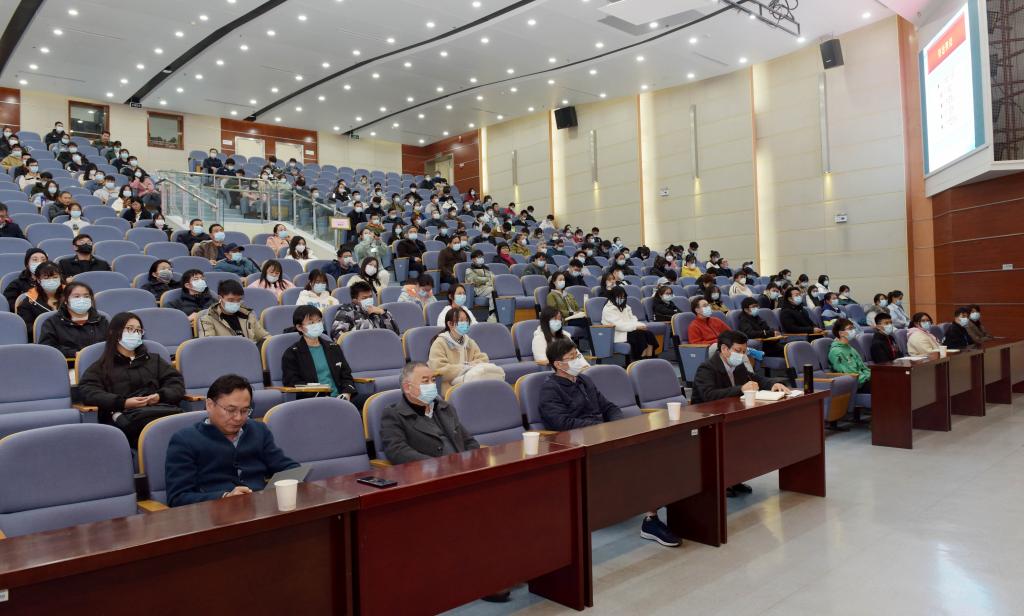 本网讯 12月15日下午,学校举行党的十九届六中全会精神辅导报告暨2021年第期6神农大讲堂,邀请省委党校郝欣富教授作专题辅导报告。报告会由党委副书记裴树东主持,校领导韩军、陈文兵、操海群出席,校党委中心组(扩大)成员和师生代表两百余人参加了报告会。