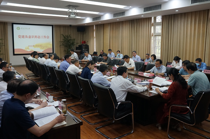 会议强调,要提高政治站位,深入学习贯彻习近平总书记关于教育、党的建设、意识形态工作的重要论述,清醒认识党建与意识形态工作面临的形势任务,扎实落实意识形态工作责任制,坚决守牢校园安全底线;要注重问题导向,加强对敏感节点、重点领域的分析研判,深入开展党建和意识形态风险隐患排查与专项整治,坚持直面问题、深挖根源、举一反三,坚决补齐短板、加固底板;要坚持守正创新,强化思想引领,广泛开展理想信念教育、社会主义核心价值观教育,扎实开展改作风、办实事、促发展专项行动,坚持正面引导与负面警示相结合,落实好立德树人根本任务;要强化党建引领,增强基层党组织政治功能和组织力,推动党建与事业发展深度融合,以高质量党建引领高质量发展,以优异成绩迎接党的二十大胜利召开。