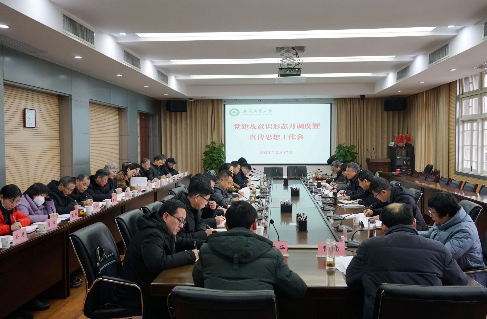本网讯 2月17日上午,我校在第三会议室召开党建及意识形态月调度暨宣传思想工作会议。校党委书记常业军、校党委副书记裴树东出席会议。校意识形态和思想政治工作领导小组成员,各二级党组织书记参加会议。