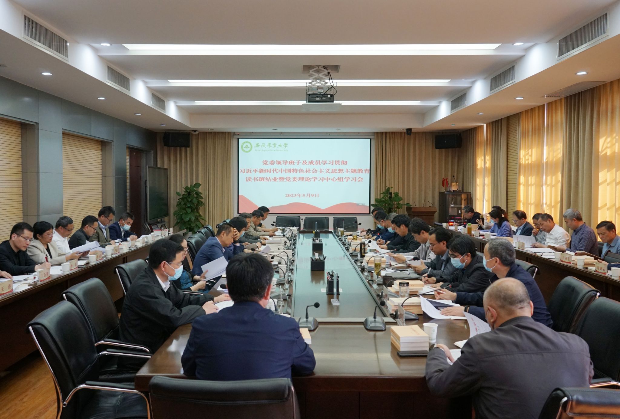 本网讯 5月9日下午,学校召开党委领导班子及成员学习贯彻习近平新时代中国特色社会主义思想主题教育读书班结业暨党委理论学习中心组学习会,围绕“坚持以高质量发展为首要任务,努力建设特色鲜明的高水平农业大学”主题开展集中学习研讨,对读书班进行总结,并对主题教育下一阶段工作进行部署。校党委副书记裴树东主持会议。校党委中心组成员、各二级党组织书记参加会议。