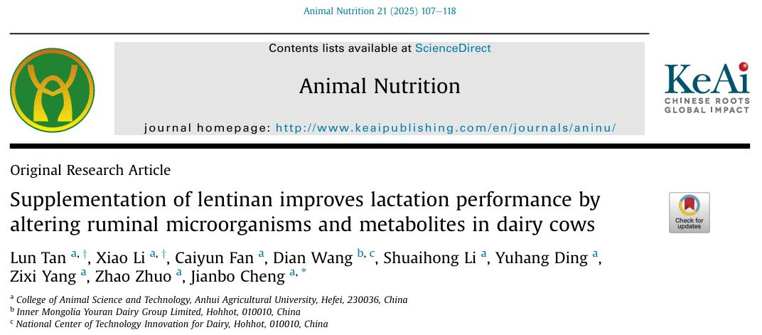 《Animal Nutrition》刊发我校程建波教授团队关于香菇多糖提高奶牛泌乳性能的研究成果