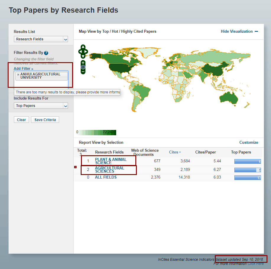 本网讯 9月14日,科睿唯安(原美国汤森路透)公布了2018年9月ESI最新数据。我校“农业科学”首次进入ESI学科排名全球前1%,成为继“植物与动物科学”之后, 第二个进入ESI全球前1%行列的学科。截止到2018年9月,我校“农业科学”总计发表论文349篇,总被引数为2189次,篇均被引6.27次;“植物与动物科学”总计发表论文677篇,总被引数为3684次,篇均被引5.44次。数据表明,我校学科建设在国际上已具备了较高的学术影响力,登上了一个新台阶。