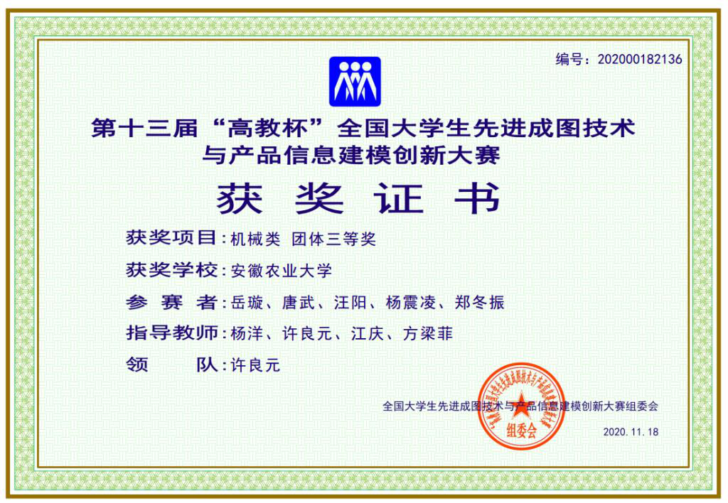 自4月份大赛启动以来,经过校级选拔、安徽省大学生先进成图技术与产品信息建模创新大赛选拔,并邀请行业专家进行比赛指导,最终在大赛中取得佳绩。