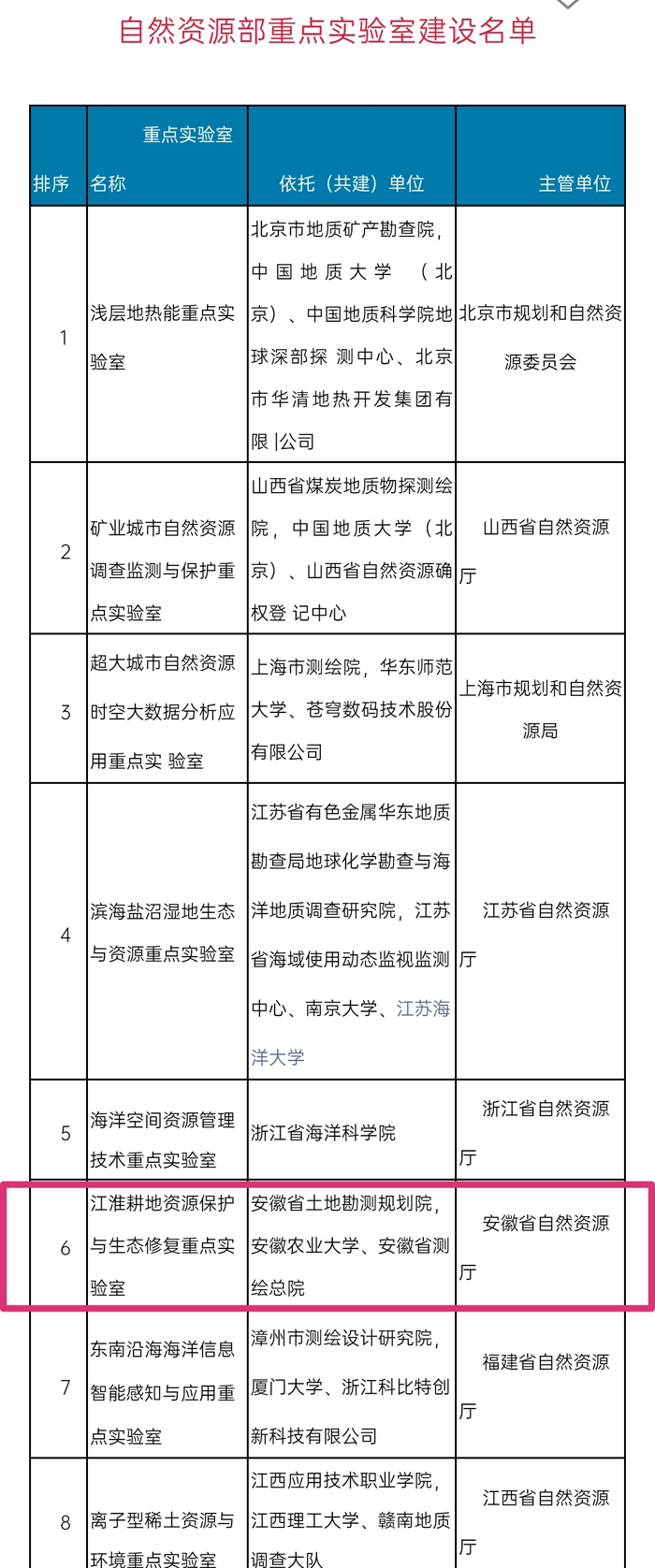 本网讯 7月23日,自然资源部办公厅发布了《关于公布重点实验室建设名单》的通知,我校与省土地勘测规划院、省测绘总院联合申报的“江淮耕地资源保护与生态修复重点实验室(以下简称重点实验室)”获批立项。