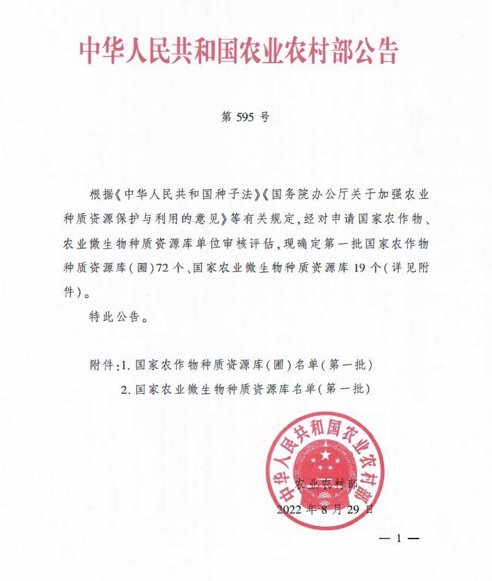 本网讯 近日,农业农村部确定第一批国家农作物种质资源库(圃)72个、国家农业微生物种质资源库19个。我校牵头申报的国家中原山地特色园艺作物种质资源圃(合肥)、国家植保微生物种质资源库(安徽)成功入选首批国家种质资源库(圃)。