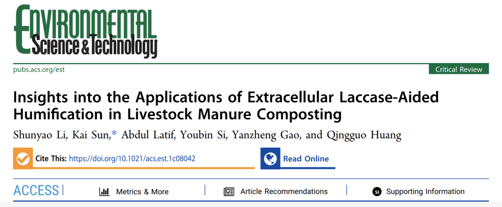 本网讯 近日,国际高水平期刊《环境科学与技术》(中科院一区,IF2021= 9.028)刊发我校资源与环境学院与安徽大学资源与环境工程学院合作开展的题为“胞外漆酶诱导腐殖化在畜禽粪便堆肥中的应用研究”。该论文探索了胞外漆酶诱导腐殖化过程及维持酶活性和原位生产的优化策略,揭示了胞外漆酶在畜禽粪便(LM)堆肥中消除有毒微污染物和封存营养物质的关键机制。研究结果有助于推进胞外酶在提高LM堆肥终产物农艺质量中的应用,为基于酶促腐殖化反应规避污染风险、固定有机碳和保护农业生产等提供科学依据。