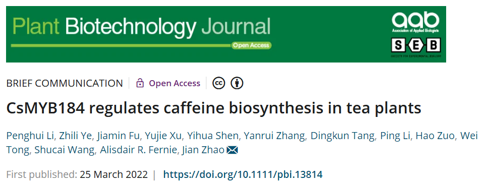 本网讯 近日,我校茶树生物学与资源利用国家重点实验室赵剑课题组在国际期刊《植物生物技术》发表题为《CsMYB184调控茶树咖啡碱合成分子机制》的研究论文,系统研究了MYB184调控茶树咖啡碱合成的分子机制。