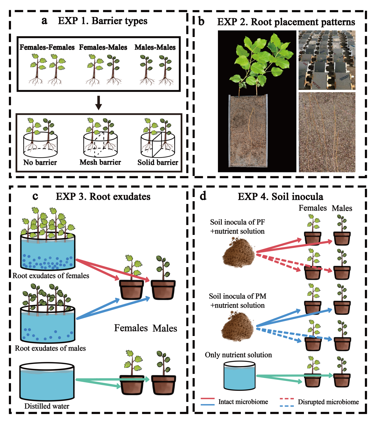 性别差异对于根区特征(例如化感物质含量和土壤微生物组成)在雌雄异株植物的性别内和性别间相互作用中的调节作用,目前尚知甚少。为了深入探究这一问题,本研究以30年生实验林为基础,结合一系列对照实验,详细研究了雌雄异株青杨(Populus cathayana)中由化感化学物质和土壤微生物介导的性别特异性地下相互作用过程及其机制。研究结果显示,雌性植株的根系释放了更多且更多样化的酚类化感物质至土壤环境中,由此导致了同性邻近植株的生长抑制以及土壤微生物群落的退化现象。与此同时,当雌性植株与雄性植株共同生长时,雌性植株的生长得到进一步增强,尤其是其根系的生长。相比于雌性植株的单独栽培,雄性植株的存在减少了土壤中总酚的积累,从而使从化感抑制转变为化学促进。与此变化相关的有益土壤细菌群落的丰富以及细菌多样性的增加进一步加强了这种性别特异性的地下相互作用,并引发了雌性植株根系生长的趋向变化。这项研究的发现对于解释性别特异性的地下化学生态过程具有重要意义,有助于保护和维护自然界中的雌雄异株植物种群。此外,对于雌雄异株植物人工林的管理策略,本研究提供了新的深入认识。
