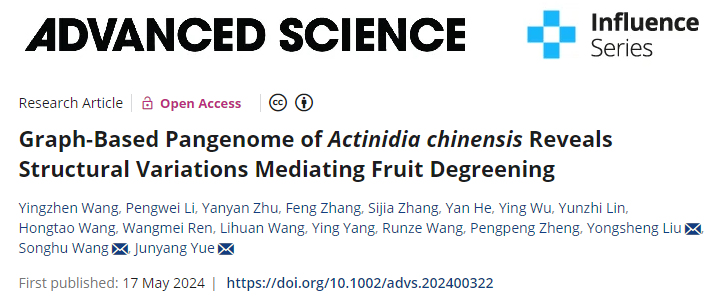 本网讯 近日,我校园艺学院猕猴桃基因组研究团队在国际著名期刊《Advanced Science》(中科院一区,IF=15.1)上发表了题为“Graph-based pangenome of Actinidia chinensis reveals structural variations mediating fruit degreening”的研究性论文。该研究绘制了7个单倍型T2T猕猴桃基因组,构建了首个猕猴桃属植物的泛基因组,为挖掘猕猴桃关键农艺性状的遗传基础提供了重要平台和数据。
