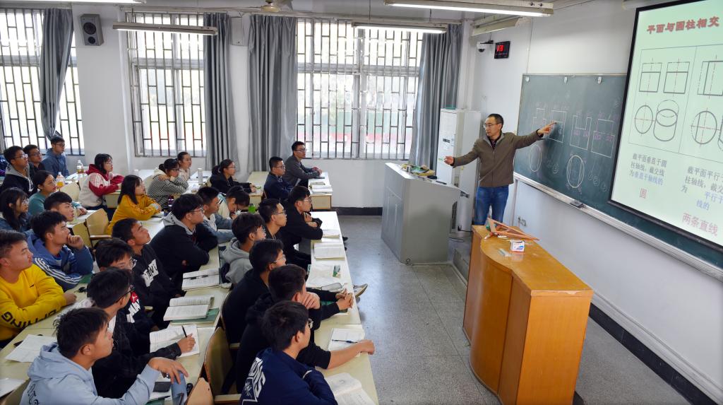 在2019级工学院《机械制图与CAD》第一堂课上,许良元开门见山地强调这门课的重要性。